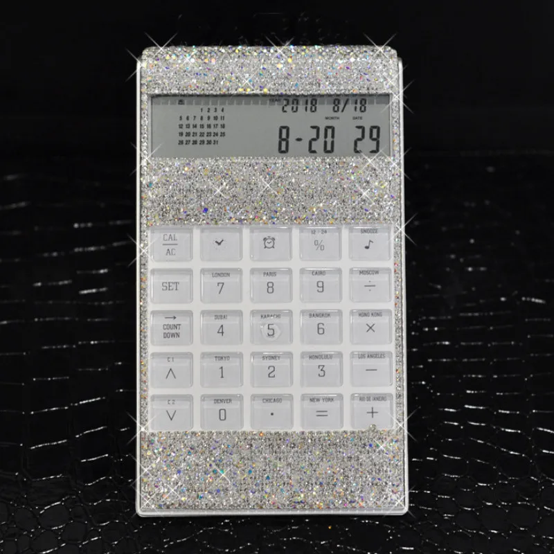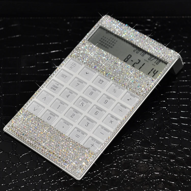 ORIGINAL Creative Ultra-thin Inlay Diamond Office Electronic Calculator Voice Multi-function Shiny Desktop L